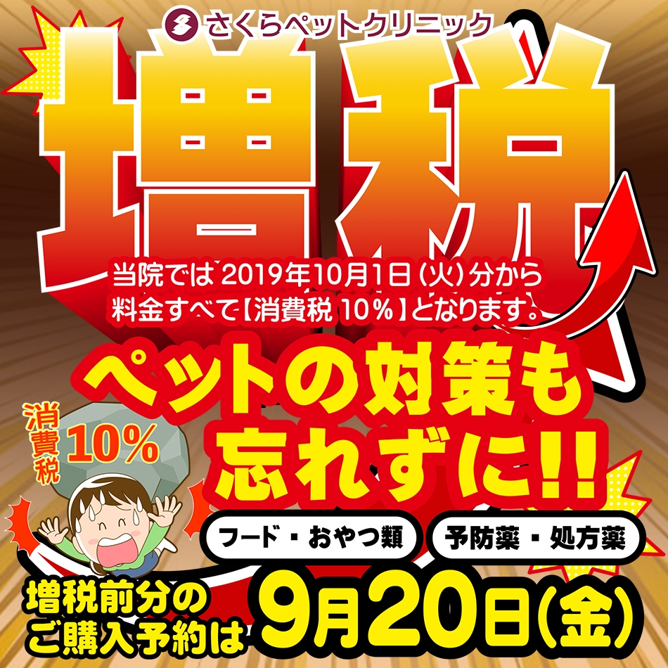 2019年10月1日(火)より当院の【すべての料金】が消費税8%から【10%】に変わります。
