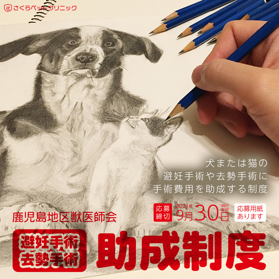 鹿児島市内にお住まいの飼い主様が、指定期間中に飼養している犬・猫の【避妊・去勢手術】をされた場合、ご応募の中から抽選で選ばれた方に対して鹿児島地区獣医師会が費用の一部助成(規定額)を行うという制度です。