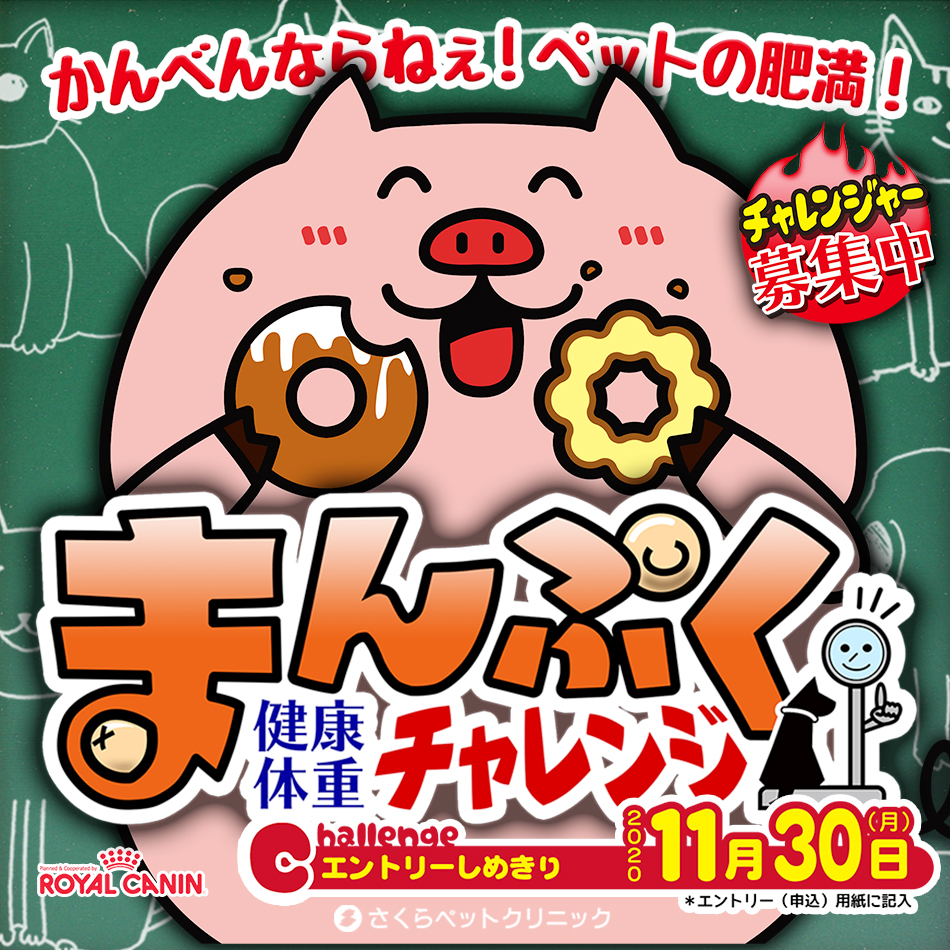 『まんぷく健康体重チャレンジ』とは、もともと療法食メーカー「ロイヤルカナン」が主催する【肥満予防のための食事管理】企画です。