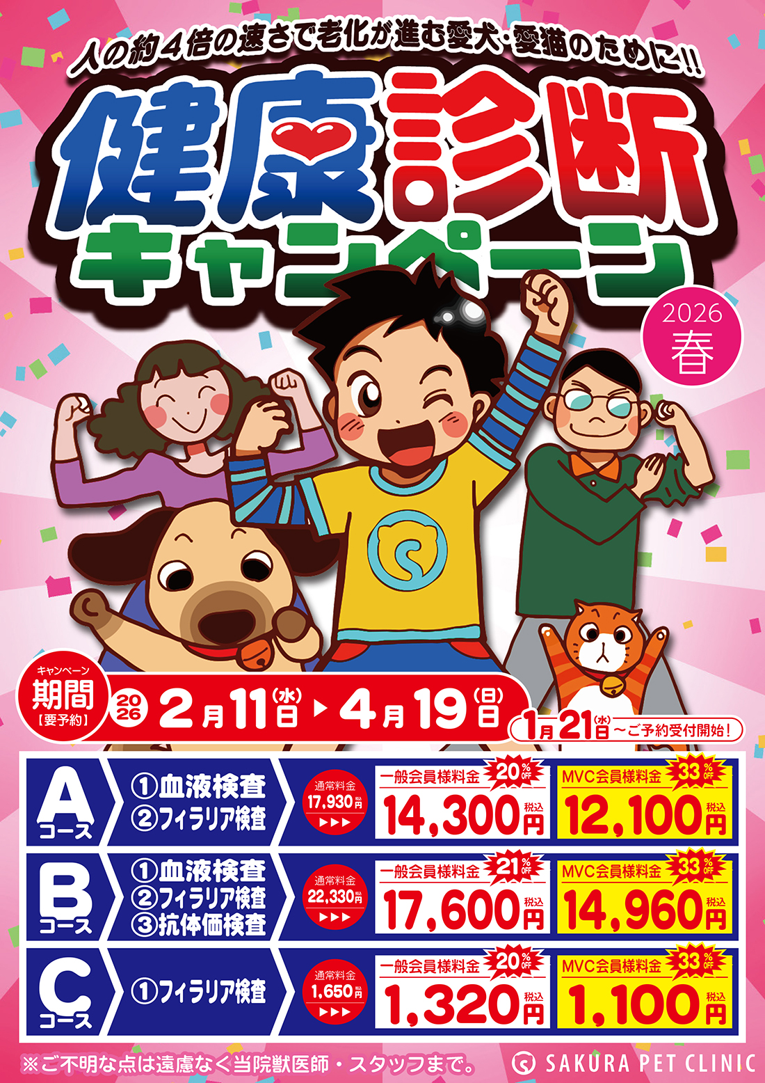 | C | ①フィラリア検査 | 1,650円 | 1,320円 | 1,100円 |